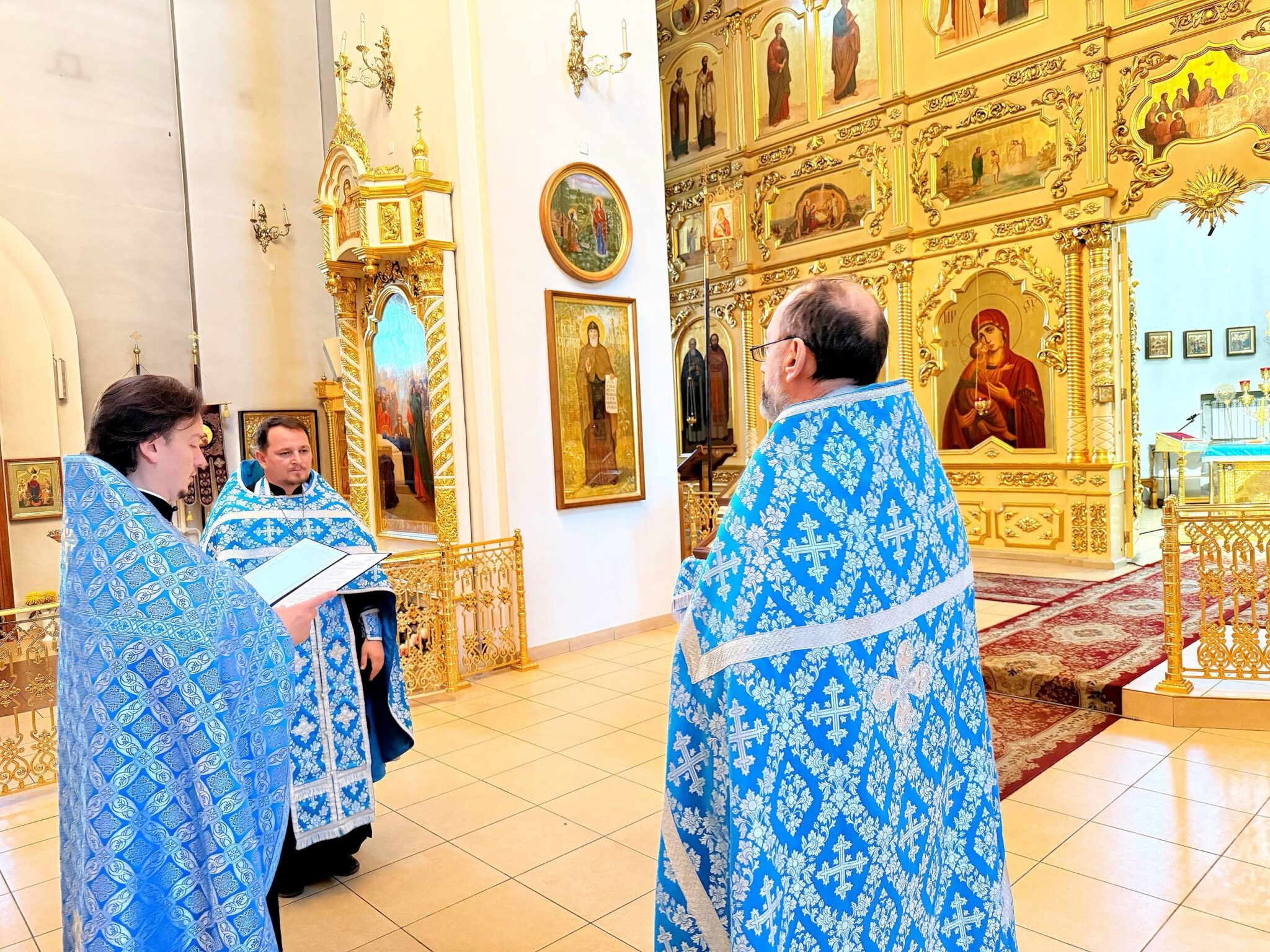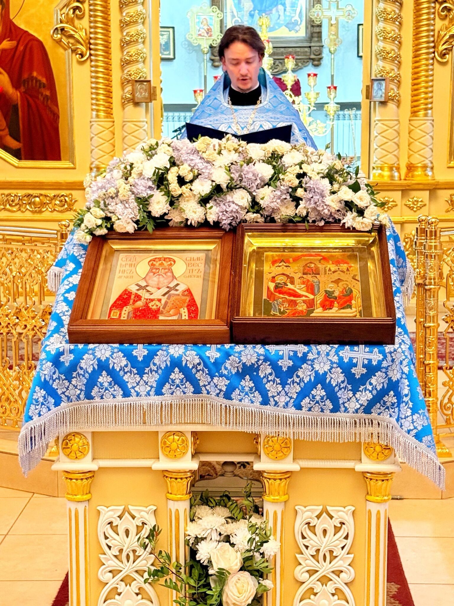 После вечернего богослужения сегодня в нашем соборе настоятель с духовенством и прихожанами совершили праздничный благодарственный молебен в память о 130-летнем юбилее учреждения Омской епархии перед «юбилейной» иконой святителя Сильвестра Омского с частью его облачения, в каком мученик был погребен.